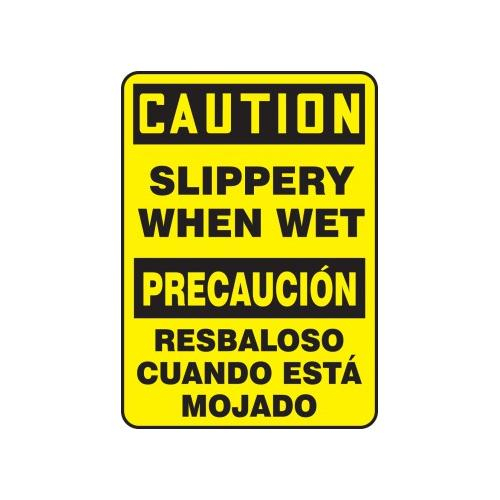 Accuform, SBMSTF624VP, 20" x 14" Bilingual OSHA Caution Safety Sign "Slippery When Wet" Plastic