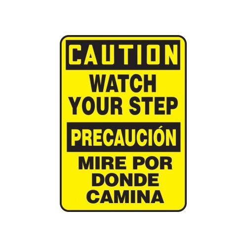 Accuform, SBMSTF661XL, 14" x 10" Bilingual OSHA Caution Safety Sign "Watch Your Step" Aluma-Lite