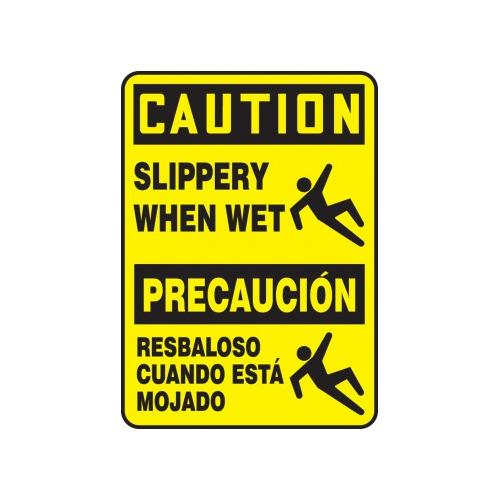 Accuform, SBMSTF674XT, 14" x 10" Bilingual OSHA Caution Safety Sign "Slippery When Wet" Dura-Plastic