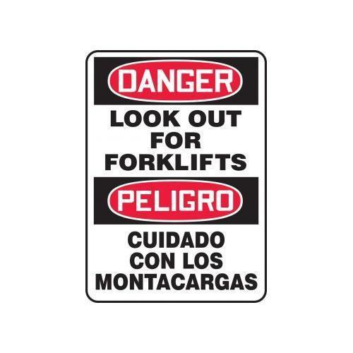 Accuform, SBMVHR110XT, 14" x 10" Bilingual OSHA Danger Sign "Look Out for Forklifts" Dura-Plastic