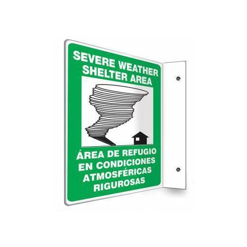 Accuform, SBPSP442, 12" x 9" Panel Bilingual Projection Safety Sign "Severe Weather Shelter Area"