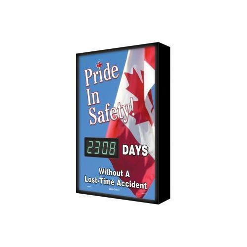 Accuform, SCF308, 28" x 20" Backlit Digi-Day 3 Electronic Scoreboard "Pride In Safety: _ Days without A Lost Time Accident"