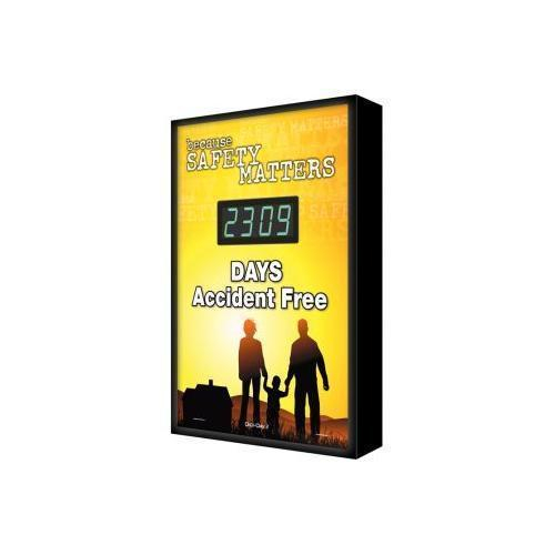 Product Size: 28" x 20", Legend: Because Safety Matters: _ Days Accident Free