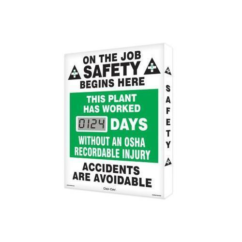 Accuform, SCJ124, 20" x 16" Digi-Day Lite Electronic Scoreboard "This Plant Has Worked _ Days without An OSHA Recordable Injury"