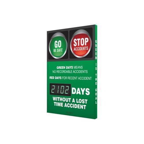 Accuform, SCK102, 28" x 20" Digi-Day 3 Electronic Safety Scoreboard "Green Days Means No Recordable Accidents Red Days for Recent Accident __ Days without A Lost Time Accident"