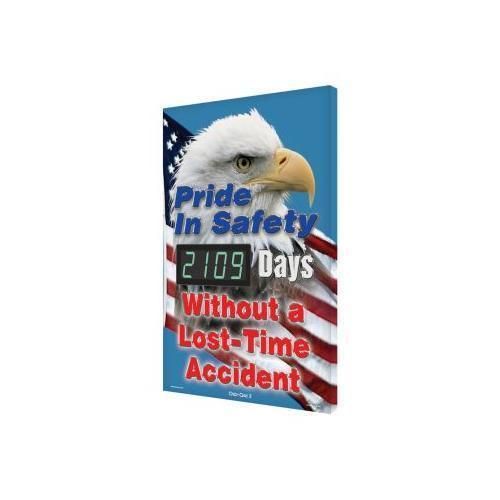 Accuform, SCK109, 28" x 20" Digi-Day 3 Electronic Safety Scoreboard "Pride In Safety: _Days without A Lost Time Accident"