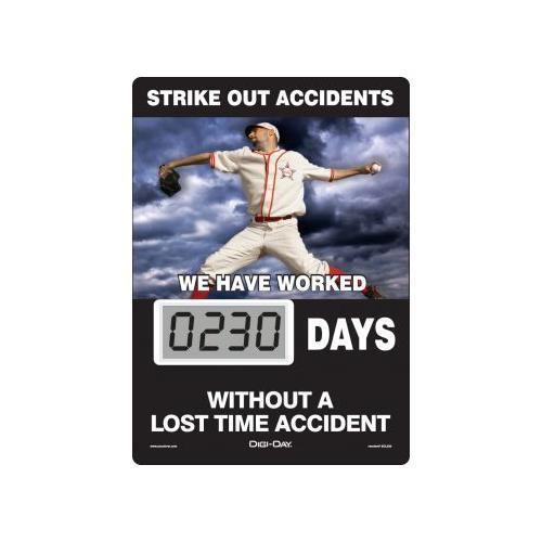 Accuform, SCL230, 14" x 10" Mini Digi-Day Electronic Scoreboard "Strike Out Accidents: We Have Worked _ Days without A Lost Time Accident"