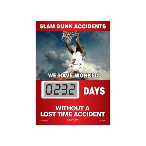 Accuform, SCL232, 14" x 10" Mini Digi-Day Electronic Scoreboard "Slam Dunk Accidents: We Have Worked _ Days without A Lost Time Accident"