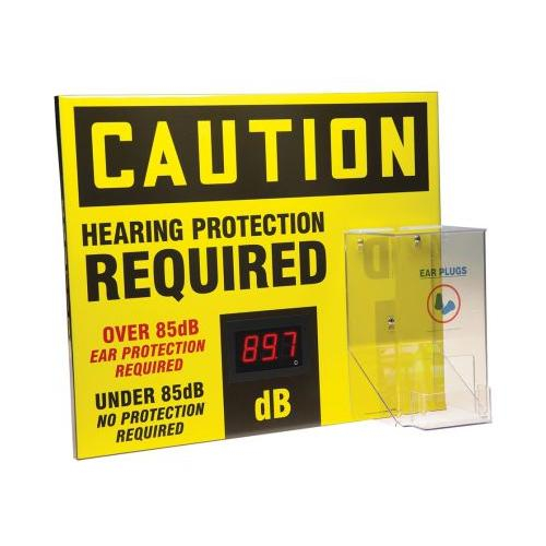 Accuform SCS607 OSHA Caution Decibel Meter Sign w/ Ear Plug Dispenser