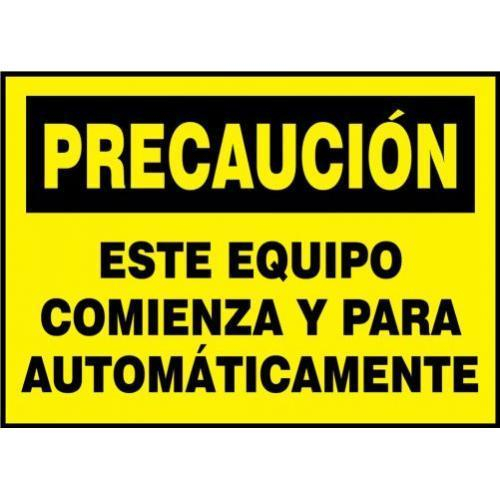 Accuform, SHLEQM782XVE, 3-1/2" x 5" OSHA Caution Equipment Safety Label "This Equipment Starts and Stops Automatically" Spanish
