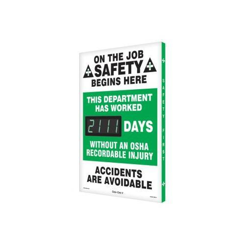 Accuform, SHSCK111, Digi-Day 3 Electronic Scoreboard "This Department Has Worked _Days without An OSHA Recordable Injury" Aluminum Face