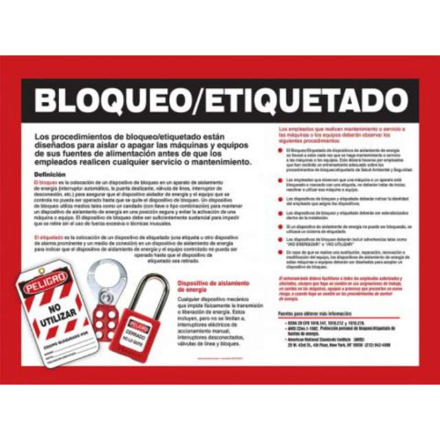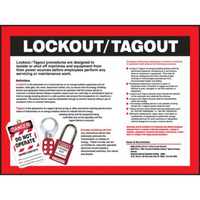 A comprehensive poster reviewing many aspects of lockout/tagout programs.