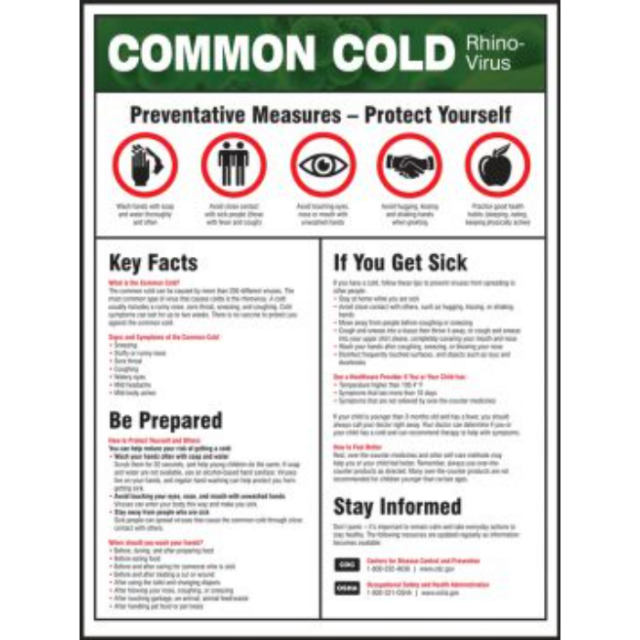 Accuform SP124499L Safety Poster, "Common Cold...", 22" x 17"