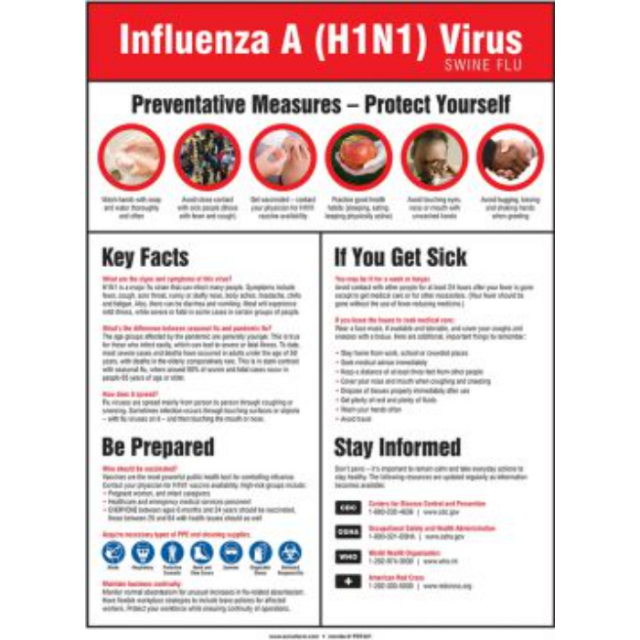 Accuform, SP125027JL, Safety Poster, Influenza A (H1N1) Virus - Swine Flu