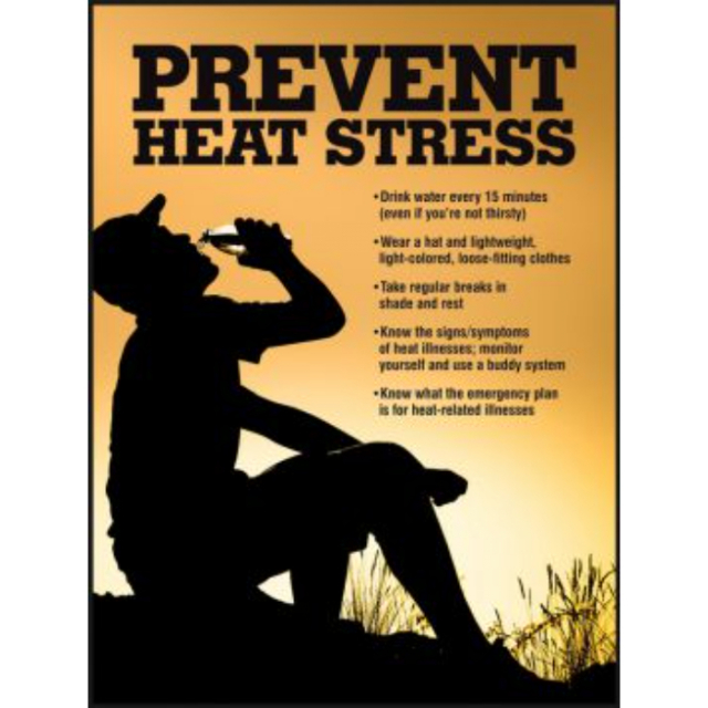 Colorful poster provides tips on how to prevent heat stress.