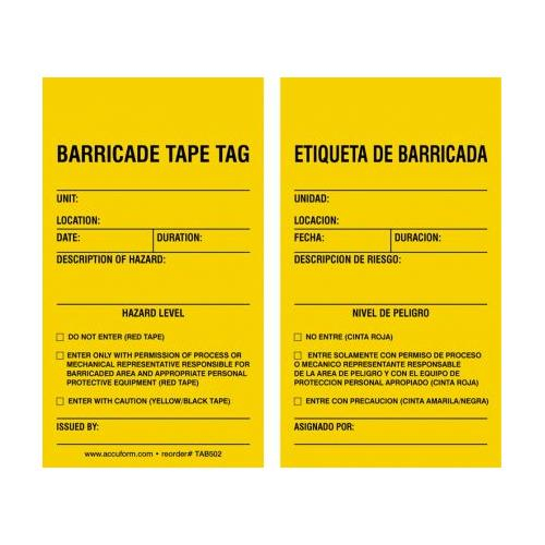 Accuform, TAB502CTP, Barricade Tape Tag "Unit - Location - Date - Duration - Description of Hazard ...", PF-Cardstock, 5-3/4" x 3-1/4"