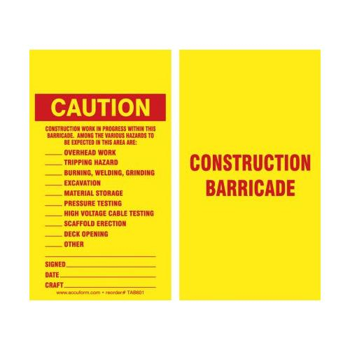 Accuform, TAB601CTP, Barricade Caution Safety Tag "Construction Work in Progress within This Barricade ...", PF-Cardstock, 5-3/4" x 3-1/4"