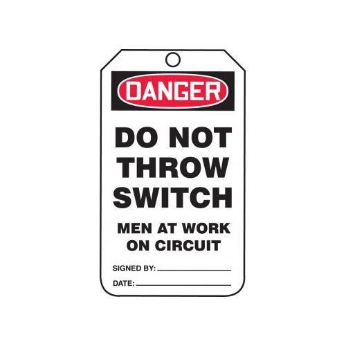 Accuform, TAM107PTP, 4-1/4" x 2-1/8" OSHA Danger Safety Tag "Do Not Throw Switch: Men At Work On Circuit" RP-Plastic