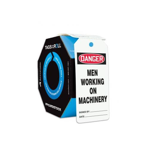 Accuform, TAR146, OSHA Danger Tag By-The-Roll "Men Working On Machinery" PF-Cardstock