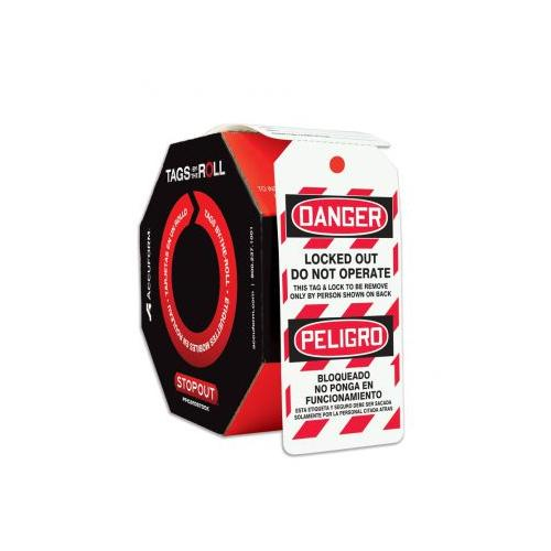 Accuform, TAR462, Bilingual OSHA Danger Tag By-The-Roll "Locked Out Do Not Operate" PF-Cardstock