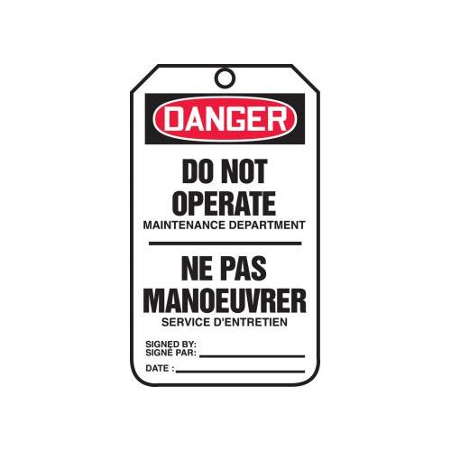 Accuform, TCF174CTP, Bilingual French Tag "Do Not Operate Maintenance Department" PF-Cardstock