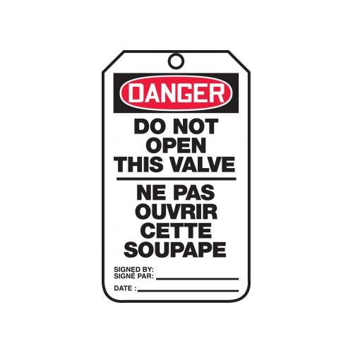 Accuform, TCF188PTP, Bilingual French Tag "Do Not Open This Valve" RP-Plastic