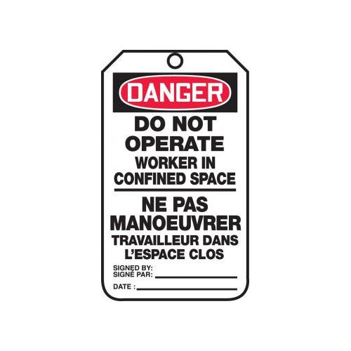 Accuform, TCF195PTP, Bilingual French Tag "Do Not Operate Worker In Confined Space" RP-Plastic