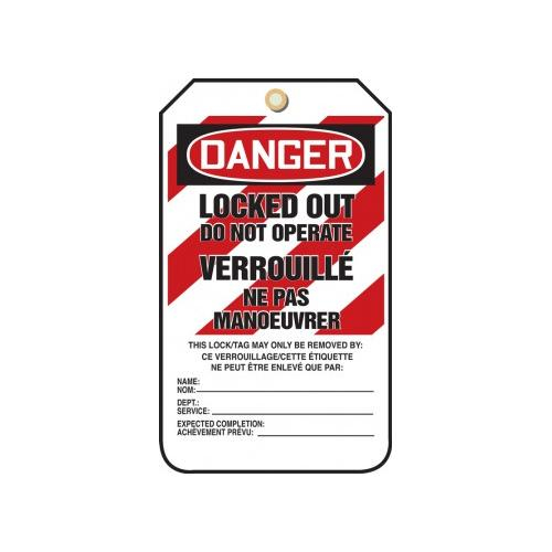 Accuform, TCF205LTP, Bilingual French Lockout Tag "Locked Out Do Not Operate" HS-Laminate