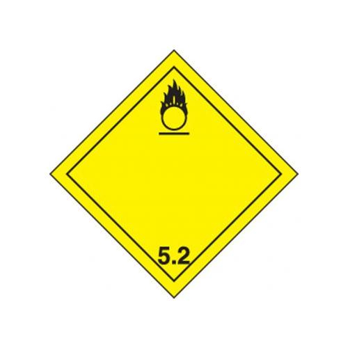 Package Qty: Roll of 500 pcs, Material: Adhesive Poly, Legend: Class 5.2 (Yellow)