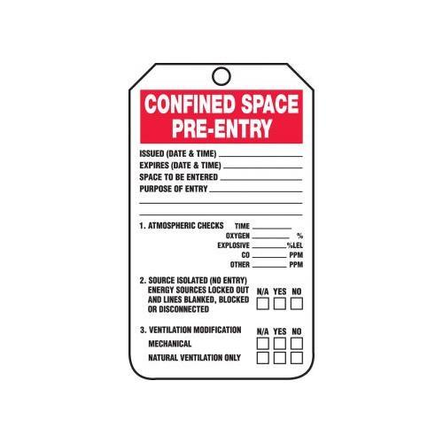 Accuform, TCS327PTP, Confined Space Status Safety Tag "Confined Space Pre- Entry" RP-Plastic