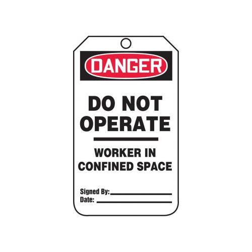Accuform, TCS331PTP, OSHA Danger Safety Tag "Do Not Operate/Worker In Confined Space" RP-Plastic