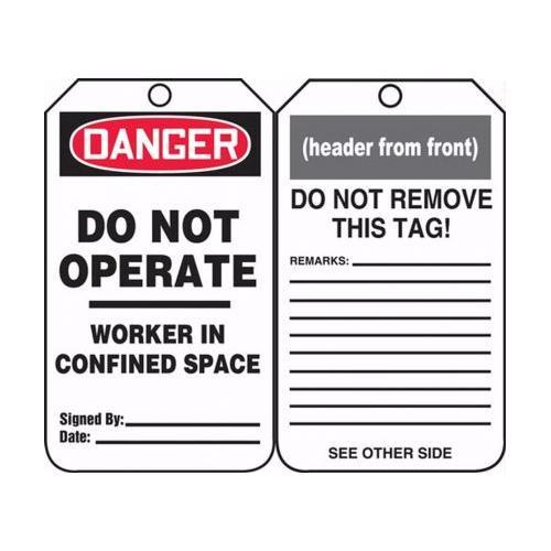 Accuform, TCS342PTM, OSHA Danger Safety Tag "Do Not Operate: Worker In Confined Space" RP-Plastic