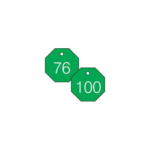 Accuform, TDG825GN, 1-1/2" Accu-Ply Engraved Numbered Plastic Octagon Tag Series 76-100 Green/White