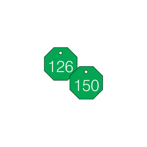 Accuform, TDG827GN, 1-1/2" Accu-Ply Engraved Numbered Plastic Octagon Tag Series 126-150 Green/White