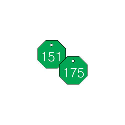 Accuform, TDG828GN, 1-1/2" Accu-Ply Engraved Numbered Plastic Octagon Tag Series 151-175 Green/White