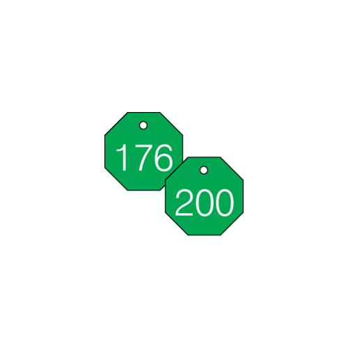 Accuform, TDG829GN, 1-1/2" Accu-Ply Engraved Numbered Plastic Octagon Tag Series 176-200 Green/White