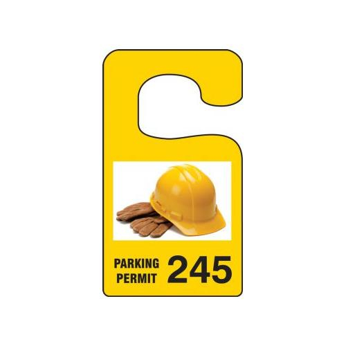 Accuform, TNT940BUG, 4-7/8" x 2-3/4" Vertical Hanging Tag "Parking Permit Image Of Hard Hat Series 600-699" Blue