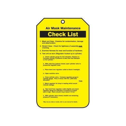 Accuform, TRS312CTP, Air Mask Status Safety Tag "Air Mask Maintenance Check List" PF-Cardstock