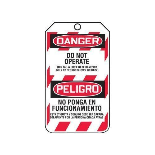 Accuform, TSP101LTM, Bilingual OSHA Danger Lockout Tag "Do Not Operate - This Tag & Lock To Be Removed Only By Person Shown On Back" HS-Laminate