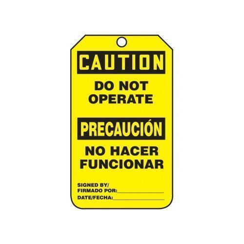 Accuform, TSP626PTP, Bilingual OSHA Caution Lockout Tag "Do Not Operate" RP-Plastic