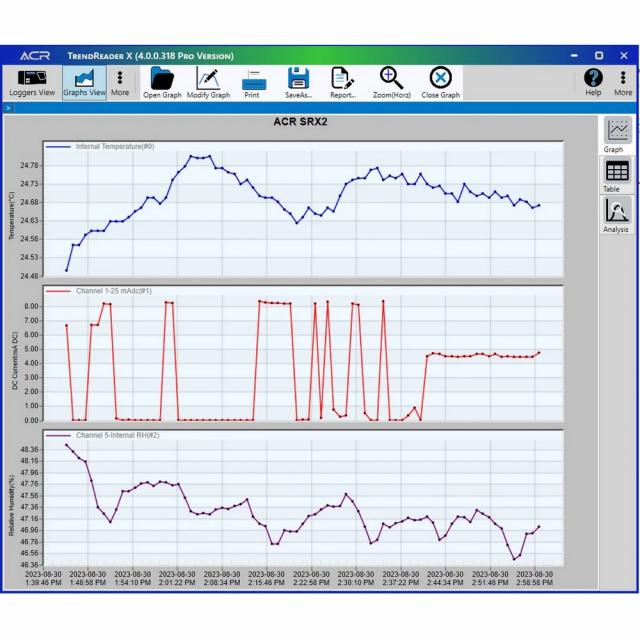 TrendReader TRX is designed exclusively for ACR's SRX and JR product families. Powerful features and easy setup enables collected data results to be thoroughly analyzed. TRX Pro version is also compatible with SRP loggers.