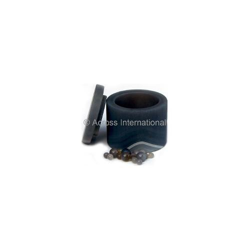 High purity natural Brazilian agate (99.91% SiO2) ball mill jars. Resistant to acids (except HF) and solvent, these jars are used whenever small quantity of samples need to be grinded without contamination. Each jar set includes grinding jar, lid, rubber sealing gasket and mixed agate grinding balls .