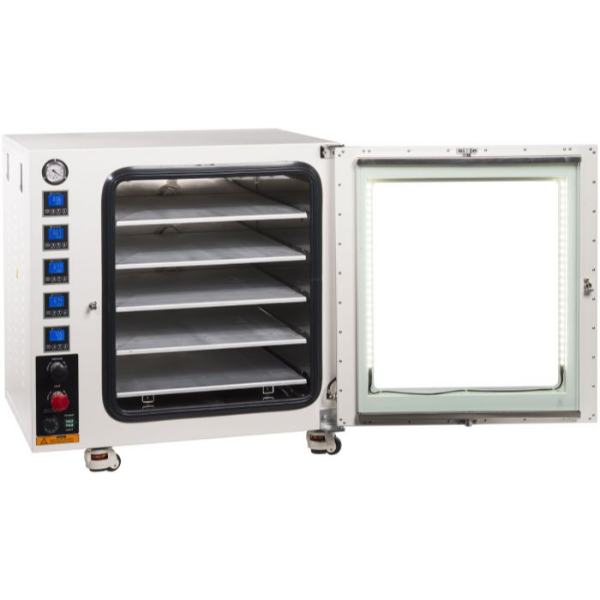 Introducing the UL certified 5-shelf 7.5 cu ft vacuum ovens, this certification is required by many municipalities, and it also provides a higher standard of equipment safety and lifespan. Also come standard is thesecondary over-temp protection dial, stainless steel tubing, stainless steel vacuum & vent valve, oil-filled vacuum gauge. With internal shelf heating technology, each shelf in these ovens has its own heater, in-shelf temperature sensor and temperature controller, together with great thermal-conductive aluminum and low proportional controller technologies, the result is perfect uniformity, accurate temperature, super-fast heating rates, minimum heat loss/exterior temperature and very low power consumption.