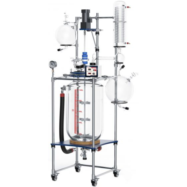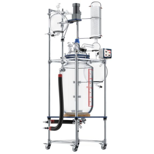 Ai R100 series jacketed glass reactors are designed for synthetic reaction of different types of materials in a controlled temperature and vacuum environment. Each reactor features adjustable stirring speeds and a constant pressure feeding funnel that allows you to add material to the vessel at a uniform and controlled speed. The built-in condenser makes it possible to recover some materials, also at a controlled rate of speed.