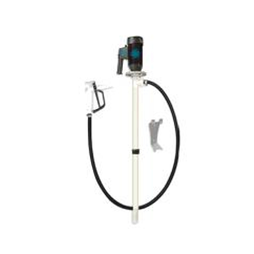 This Pump Package's unique design allows operators to safely measure and transfer concentrated and very aggressive liquids. Common applications include: Sulfuric Acid 66 Baume, Propionic Acid, Concentrated Nitric (98%) and Hydrofluoric Acid. Applications: Sulfuric Acid 66 Baume Propionic Acid Concentrated Nitric (98%) Hydrofluoric Acid Technical Data Motor Type: 110V Electric Pump Assembly: PVDF (Kynar) Pump Length: 47" (1200 mm) Hose: 6 ft. (1,8 m), I.D. 1" (25 mm) Dispensing Nozzle: 1" (25 mm) PVDF Flow Meter: Digital / PVDF totalizer Barrel Adapter: Polypropylene Storage Bracket: Steel Max. Flow Rate: 16 GPM (61 LPM) based on water Max. Pressure: 35 ft. (10,6 m) Max. Viscosity: 300 cps (mPas) Max Temperature: 175° F (80° C)