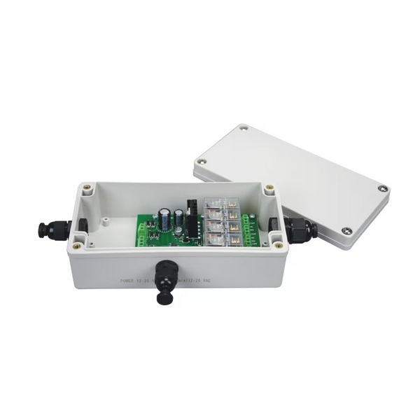 The relay box is an add-on compatible with AGB, AGF, Gladiator and the AE 403a Indicator. This product allows checkweighing limits to trigger a voltage relay, allowing the scale to drive items like motors or lights.