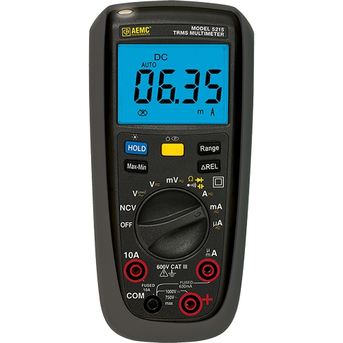The Model 5215 is a portable hand-held multimeter which measures a variety of electrical and physical quantities including voltage (AC and DC), resistance, capacitance, and frequency. These instruments can also perform continuity checks, voltage detection and diode testing (including forward bias voltage). Measurement features include Auto Range mode, which enables the instrument to select the best range for the input detected, and a Data HOLD function. This instrument is rugged and simple to use and rated to 600V CAT III.