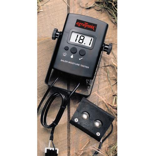 AgraTronix 07150 BHT-1 Baler-Mounted Hay Moisture Tester measures hay in square or round balers on the go. The backlit display is updated every 3-5 seconds so you have up-to-date moisture levels of the hay in your baler. Tests hay from 8% to 44% moisture and has a built-in self-calibration button. Indicator warns of moisture levels above or below the limit. Kit comes complete with display, sensor 25-ft sensor cable, water-resistant connectors and stainless steel hardware.