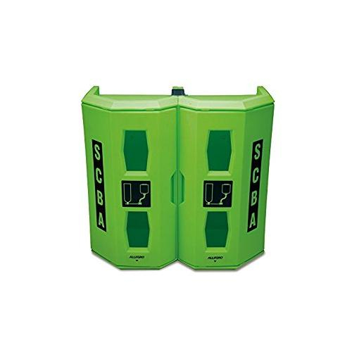 Built to store two SCBA units, this low profile, Hi-Viz green wall mounted case is rugged yet light weight. Built for simple, fast installation, this wall case is also recyclable and built from Linear Low Density Polyethylene (LLDPE). Four viewing windows on each side allow easy visibility of the SCBA gauges. Cylinder Brackets and straps support the entire weight of the SCBA’s. Comes with two universal wall brackets. Recyclable.