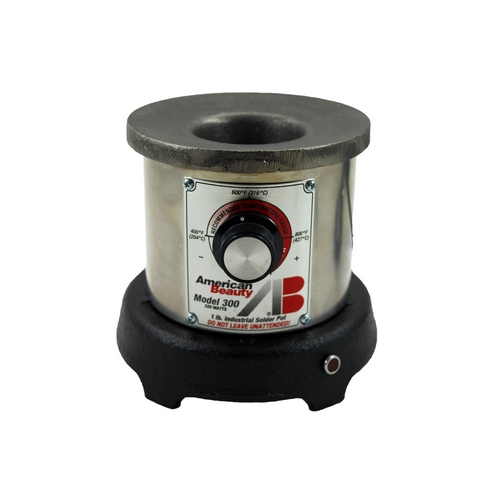 American Beauty solder pots are recognized throughout the industry forsuperior performance andreliable control of solder temperature. Customer have used phrases such as; bullet proof and glutton for punishment when describing their American Beauty pots. If your need is a pot that will work day after day, month after month, this is the product for you. Uses include tinning the ends of stranded wire leads, pre-tinning small electrical parts, re-tinning soldering iron tips and dip soldering small circuit boards. Internal dross is moved to lip where it cinders away. Dross skimmers are safer and more efficient than paddles, spoons and sticks that contaminate solder and lower temperature.